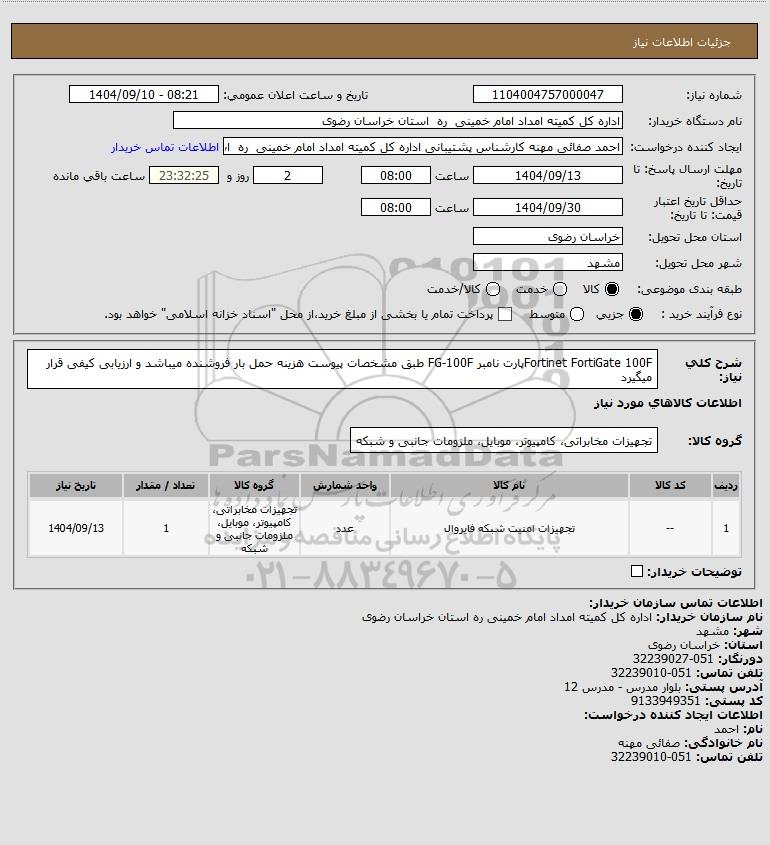 نام دستگاه خریدار:اداره کل کمیته امداد امام خمینی ره استان خراسان رضوی