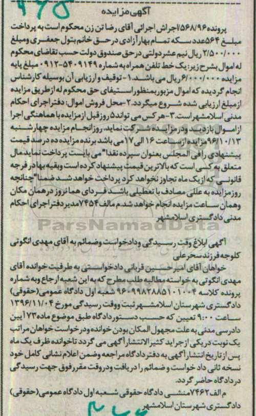 دادگاه حقوقی شعبه اول دادگاه عمومی دادگستری شهرستان اسلامشهر
