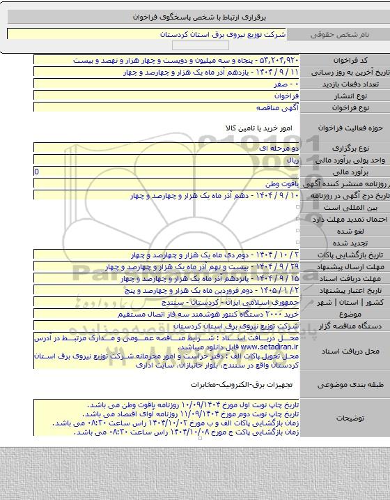 مناقصه خرید ۲۰۰۰ دستگاه کنتور هوشمند سه فاز اتصال مستقیم از کلیه افراد متخصص و شرکتها واجد شرایط دعوت به عمل میآید در مناقصه با کد خبرگزاری پارس نماد: 9926735 شرکت نمایند.