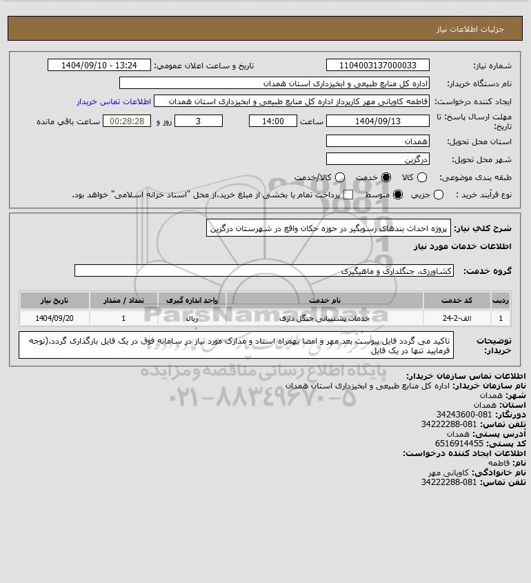 نام دستگاه خریدار:اداره کل منابع طبیعی و ابخیزداری استان همدان