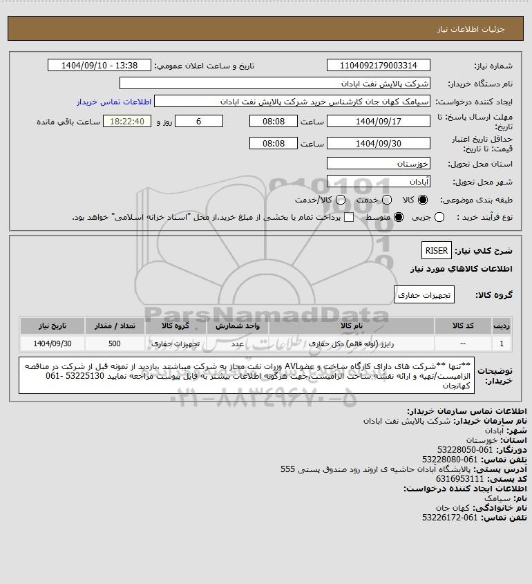 نام سازمان خریدار: شرکت پالایش نفت ابادان