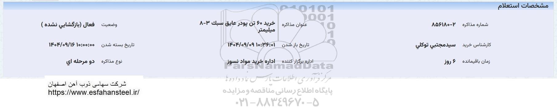 عنوان مذاکره : خرید 60 تن پودر عایق سبک 3-8