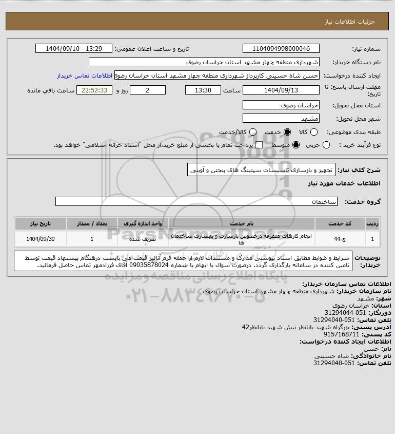 شرح کلی نیاز: تجهیز و بازسازی تاسیسات سپتینگ های پنجتن و آوینی