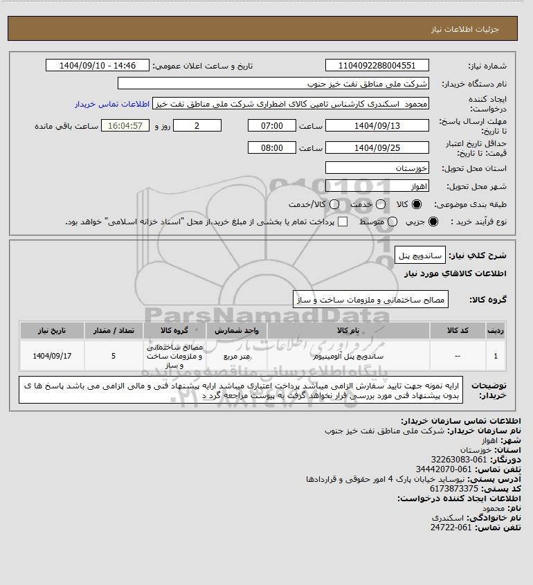 نام سازمان خریدار: شرکت ملی مناطق نفت خیز جنوب
