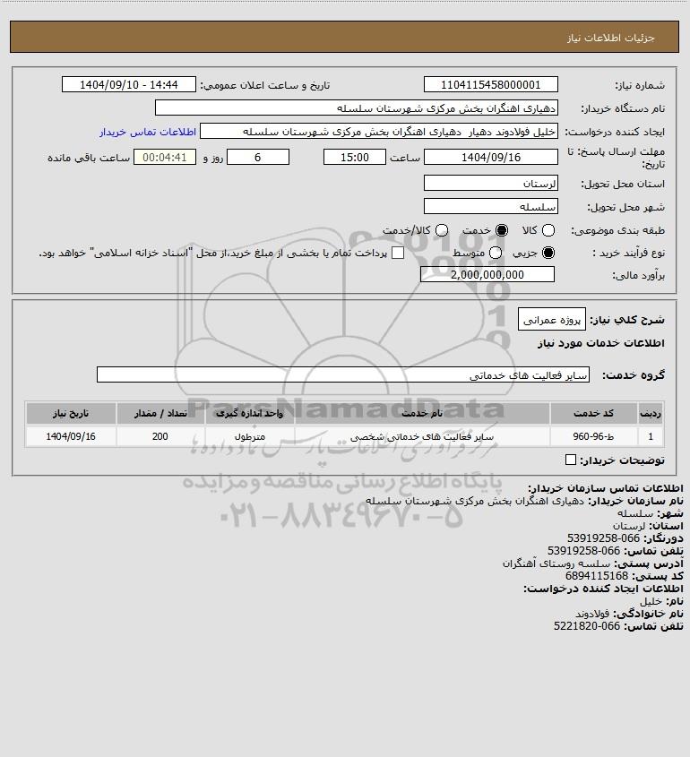 نام دستگاه خریدار:دهیاری اهنگران بخش مرکزی شهرستان سلسله