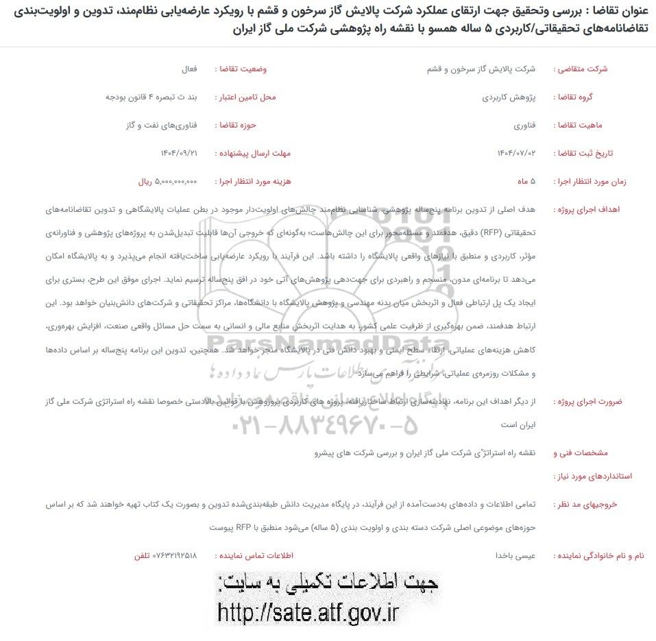 شرکت متقاضی: شرکت پالایش گاز سرخون و قشم