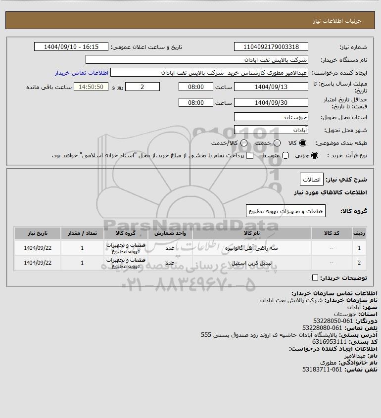 نام دستگاه خریدار:شرکت پالایش نفت ابادان