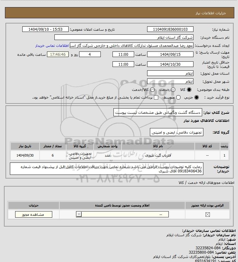 نام دستگاه خریدار:شرکت گاز استان ایلام