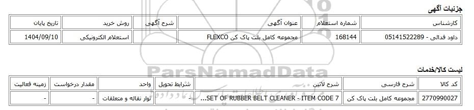 داود فدائی - 05141522289168144مجموعه کامل بلت پاک کن FLEXCOاستعلام الکترونیکی1404/09/10