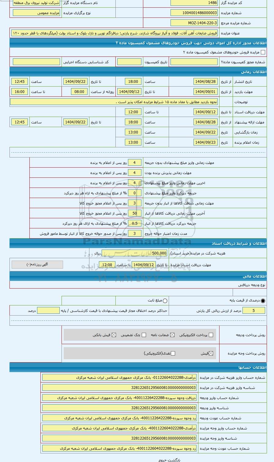 شماره پارتی1104001486000005نوع برگزاری مزایده مزایده عمومی