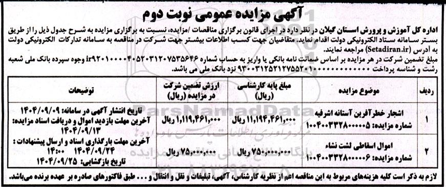 | اموال اسقاطی لشت نشاء شماره مزایده 1004003328000006 |