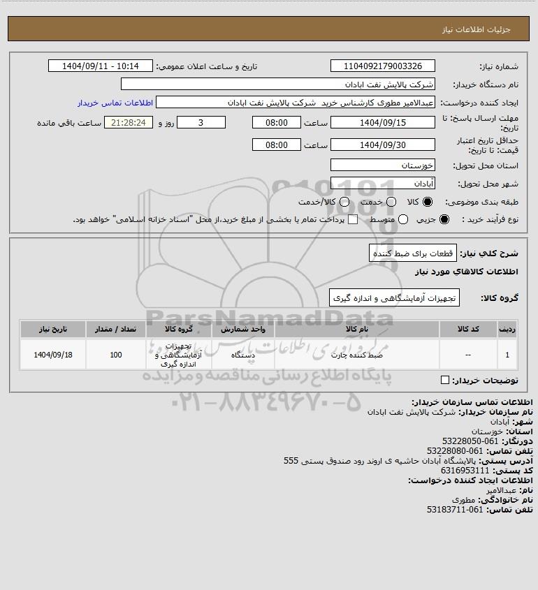 نام دستگاه خریدار:شرکت پالایش نفت ابادان