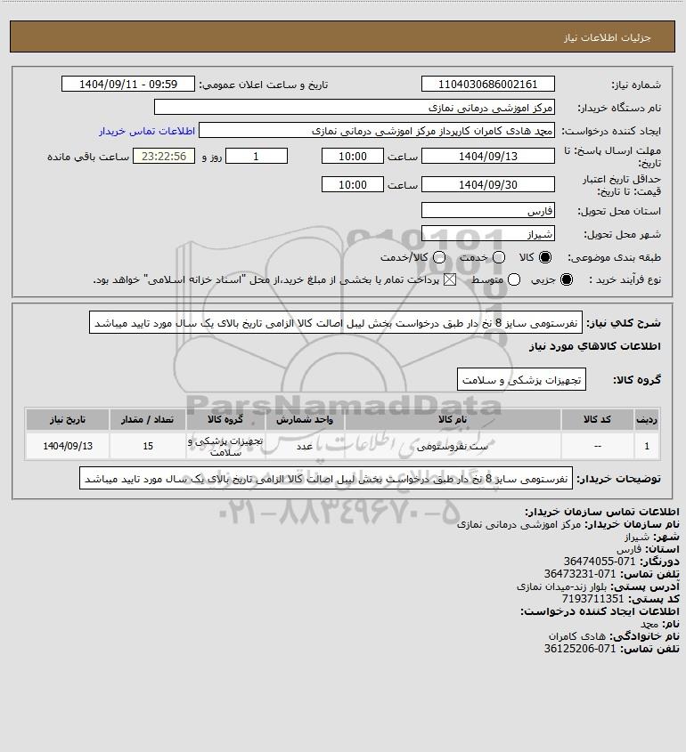 نام دستگاه خریدار:مرکز اموزشی درمانی نمازی