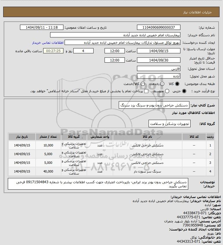 شرح کلی نیاز: دستکش جراحی بدون پودر-و سرنگ یزد سرنگ