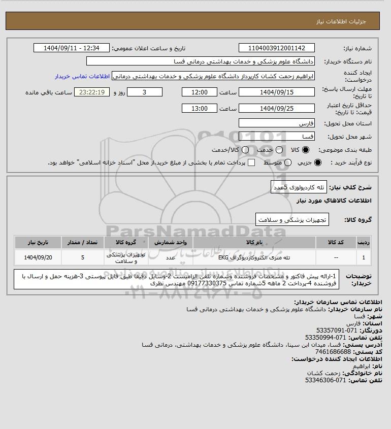 شرح کلی نیاز: تله کاردیولوزی 5عدد
