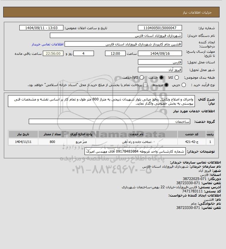 نام دستگاه خریدار:شهرداری فیروزاباد استان فارس
