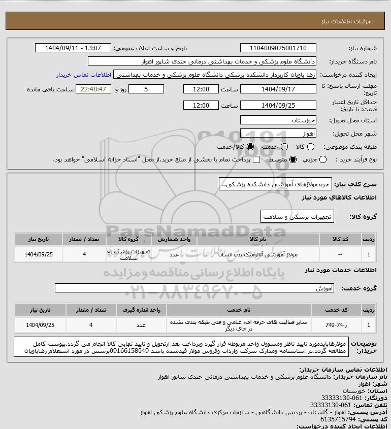 شرح کلی نیاز: خریدمولاژهای آموزشی دانشکده پزشکی..