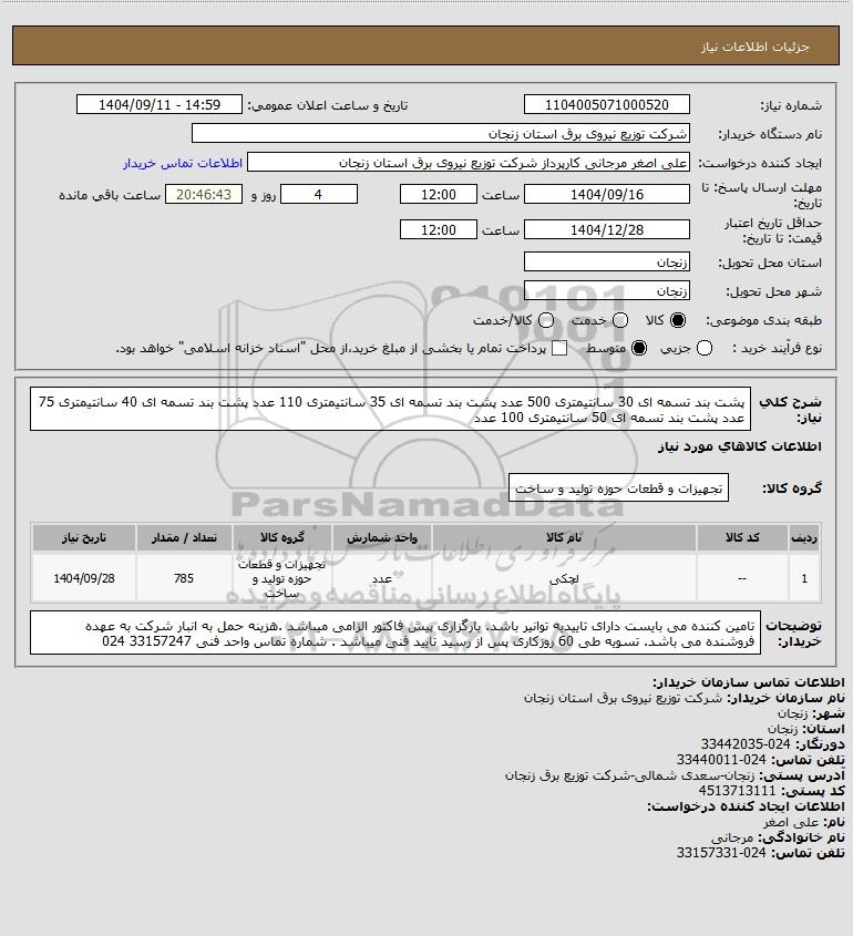 شرح کلی نیاز: پشت بند تسمه ای 30 سانتیمتری 500 عدد