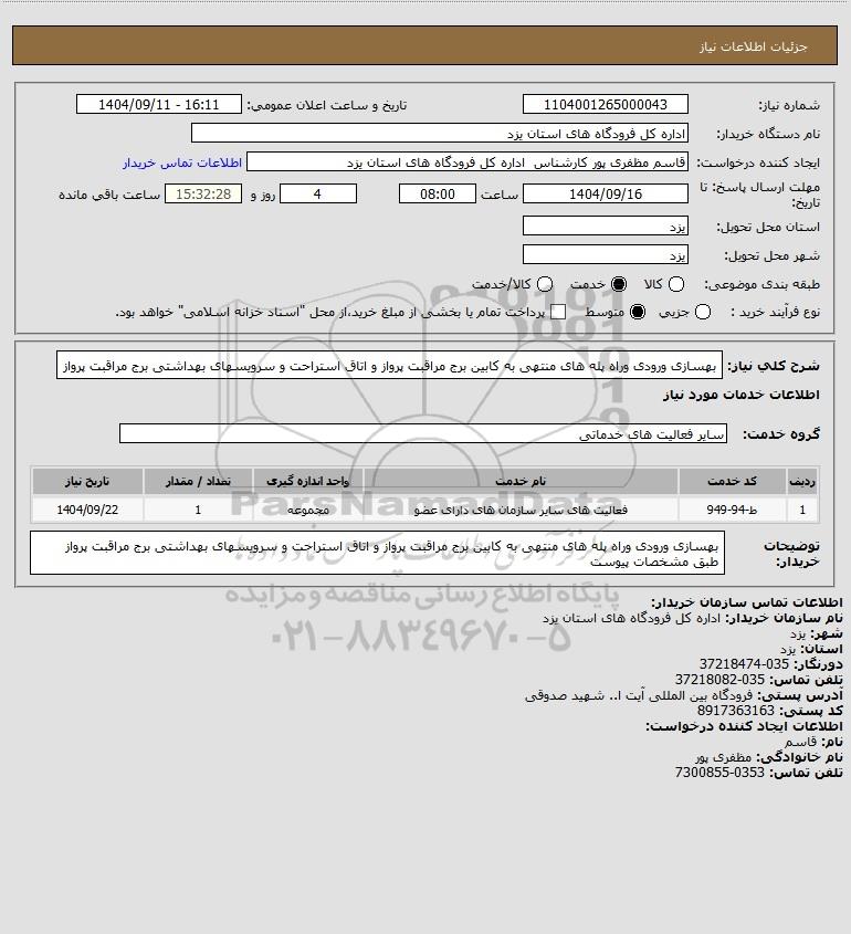 نام دستگاه خریدار:اداره کل فرودگاه های استان یزد