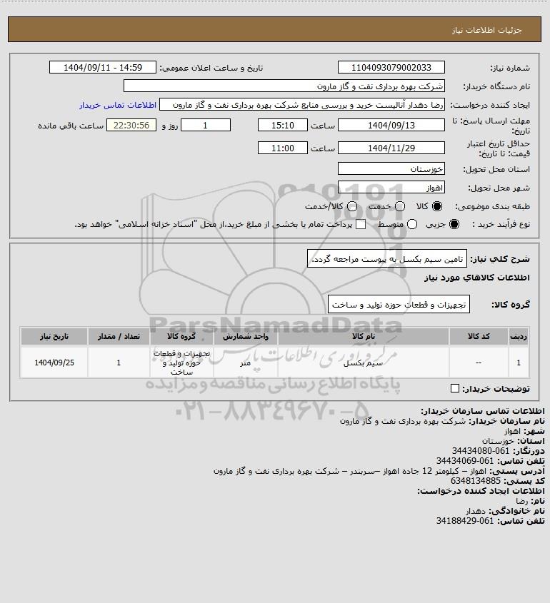 شرح کلی نیاز: تامین سیم بکسل به پیوست مراجعه گردد.