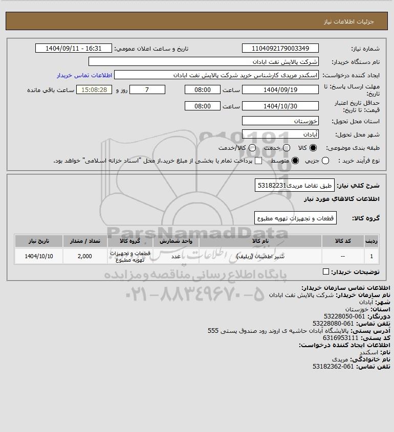 نام دستگاه خریدار:شرکت پالایش نفت ابادان