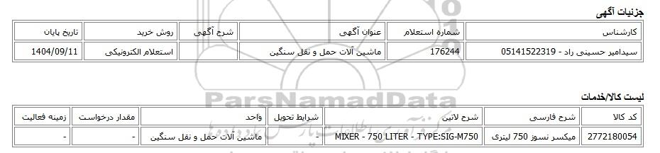 سیدامیر حسینی راد - 05141522319176244ماشین آلات حمل و نقل سنگیناستعلام الکترونیکی1404/09/11