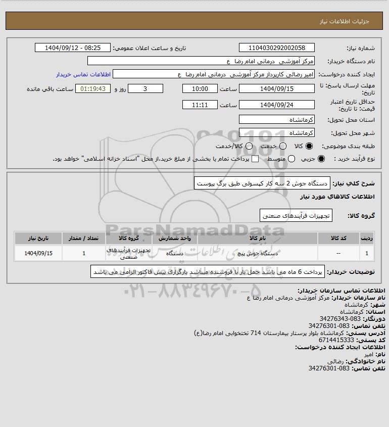 نام دستگاه خریدار:مرکز آموزشی درمانی امام رضا ع