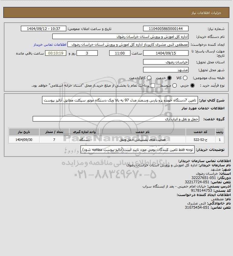 نام دستگاه خریدار:اداره کل اموزش و پرورش استان خراسان رضوی