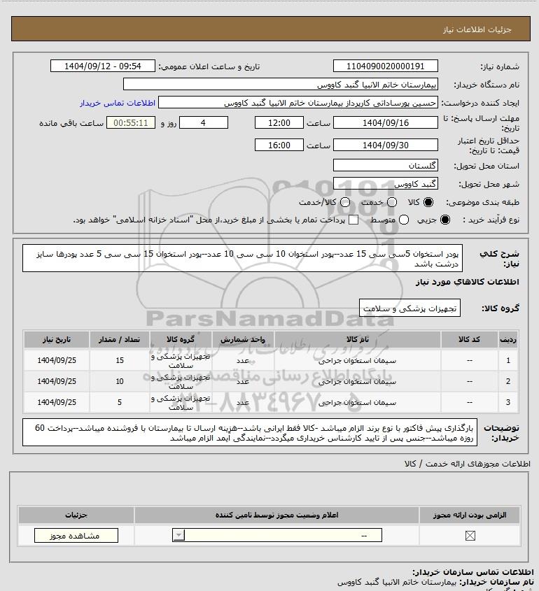 نام دستگاه خریدار:بیمارستان خاتم الانبیا گنبد کاووس