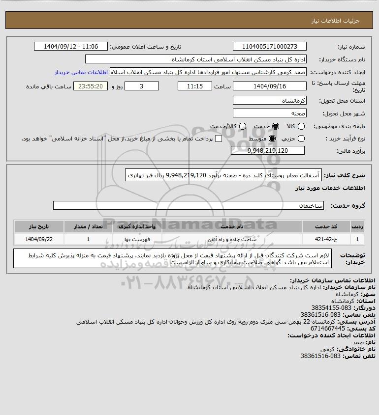 نام دستگاه خریدار:اداره کل بنیاد مسکن انقلاب اسلامی استان کرمانشاه