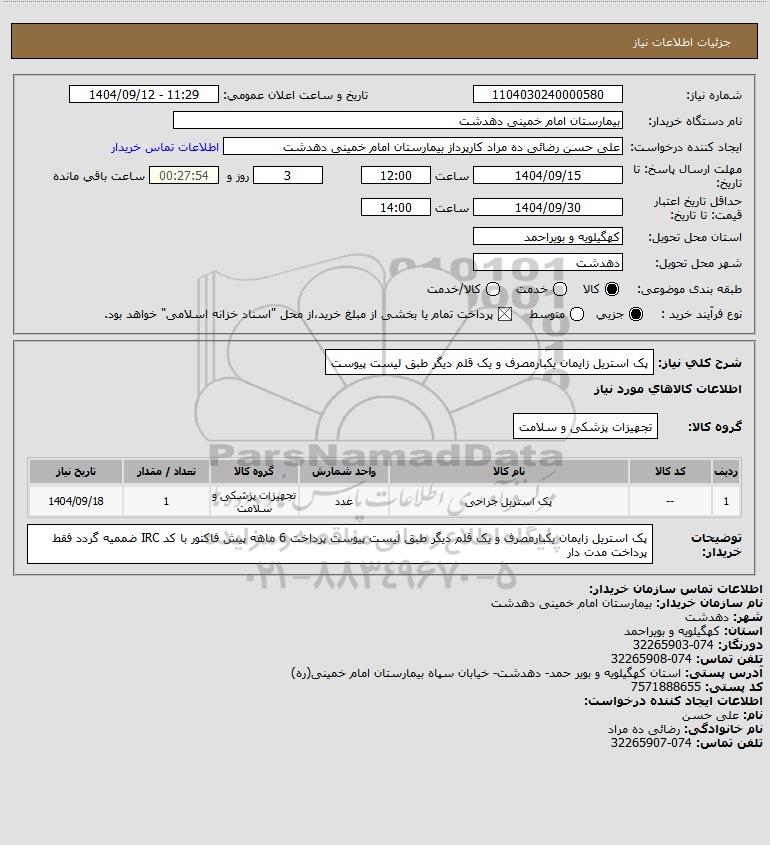 نام دستگاه خریدار:بیمارستان امام خمینی دهدشت