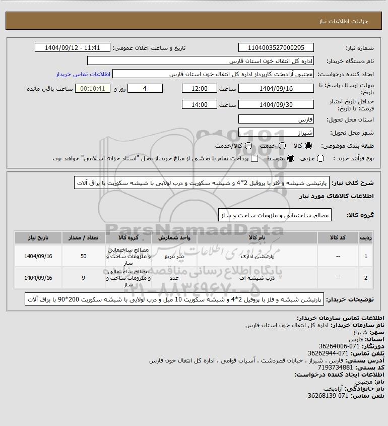 1 -- پارتیشن اداری متر مربع مصالح ساختمانی و ملزومات ساخت و ساز 50 1404/09/16