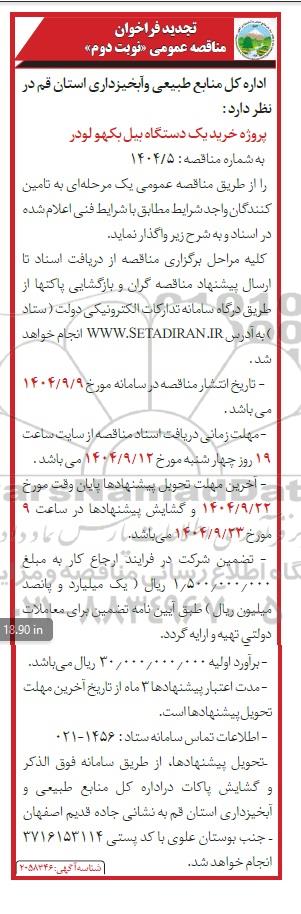 تجدید فراخوان مناقصه خرید یک دستگاه بیل بکهو لودر- نوبت دوم , تجدید فراخوان مناقصه خرید یک دستگاه بیل بکهو لودر- نوبت دوم