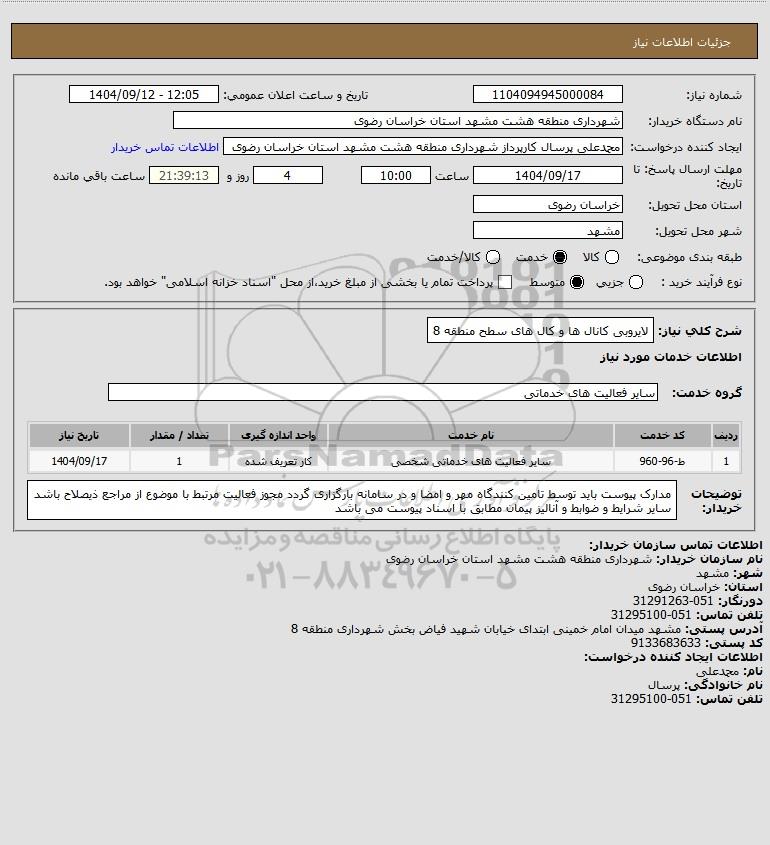 نام دستگاه خریدار:شهرداری منطقه هشت مشهد استان خراسان رضوی