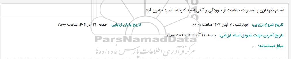 مناقصه انجام نگهداری و تعمیرات حفاظت از خوردگی و آنتی اسید کارخانه خاتون آباد  -مناقصه روز چهارشنبه دوازدهم آذر ماه 1404, مناقصه انجام نگهداری و تعمیرات حفاظت از خوردگی و آنتی اسید کارخانه خاتون آباد