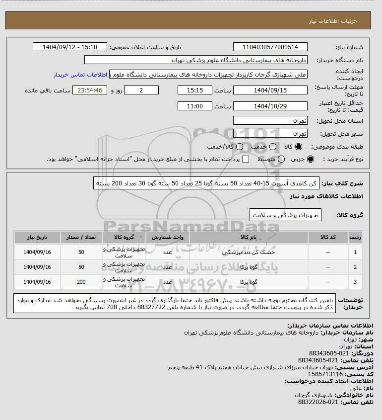 | 2 | -- | گوتا پرکا | عدد | تجهیزات پزشکی و سلامت | 50 | 1404/09/16 |