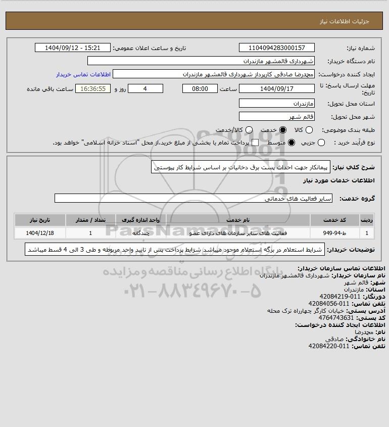 شرح کلی نیاز: پیمانکار جهت احداث پست برق دخانیات بر اساس شرایط کار پیوستی