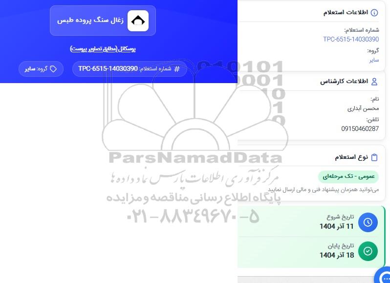 شماره استعلام: TPC - 6515 - 14030390 گروه: سایر
