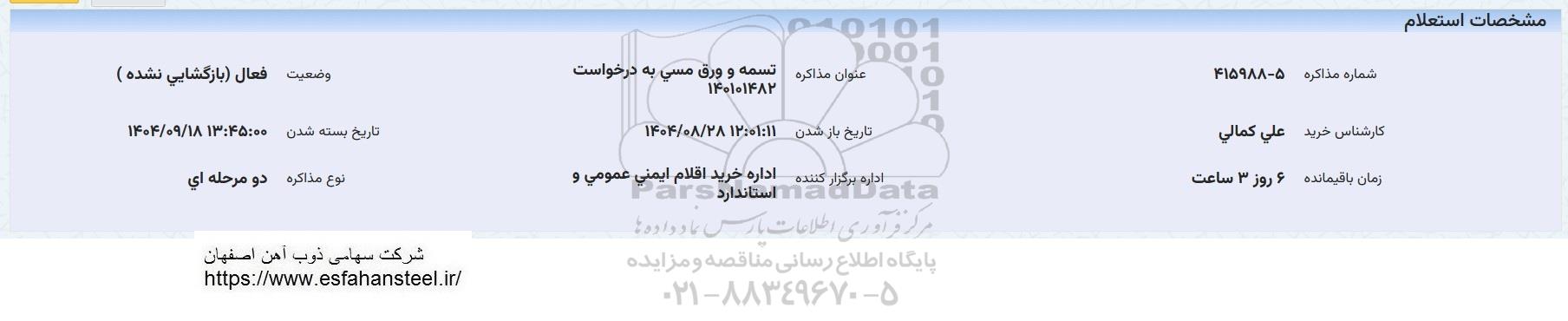 عنوان مذاکره: تسمه و ورق مسی به درخواست 140101482