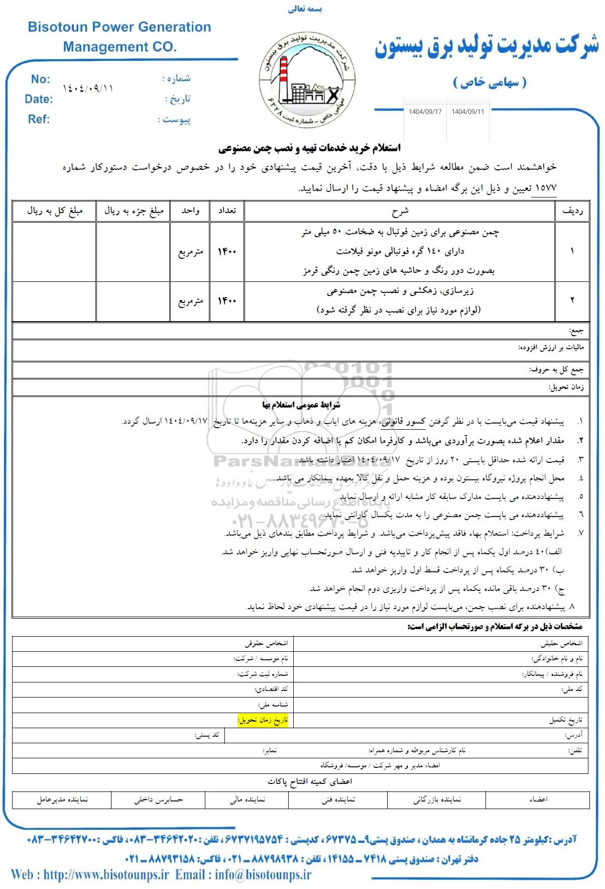 استعلام خرید خدمات تهیه و نصب چمن مصنوعی