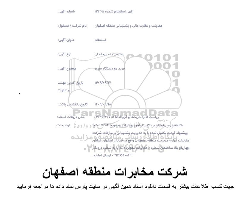 استعلام خرید دو دستگاه سرور , استعلام خرید دو دستگاه سرور