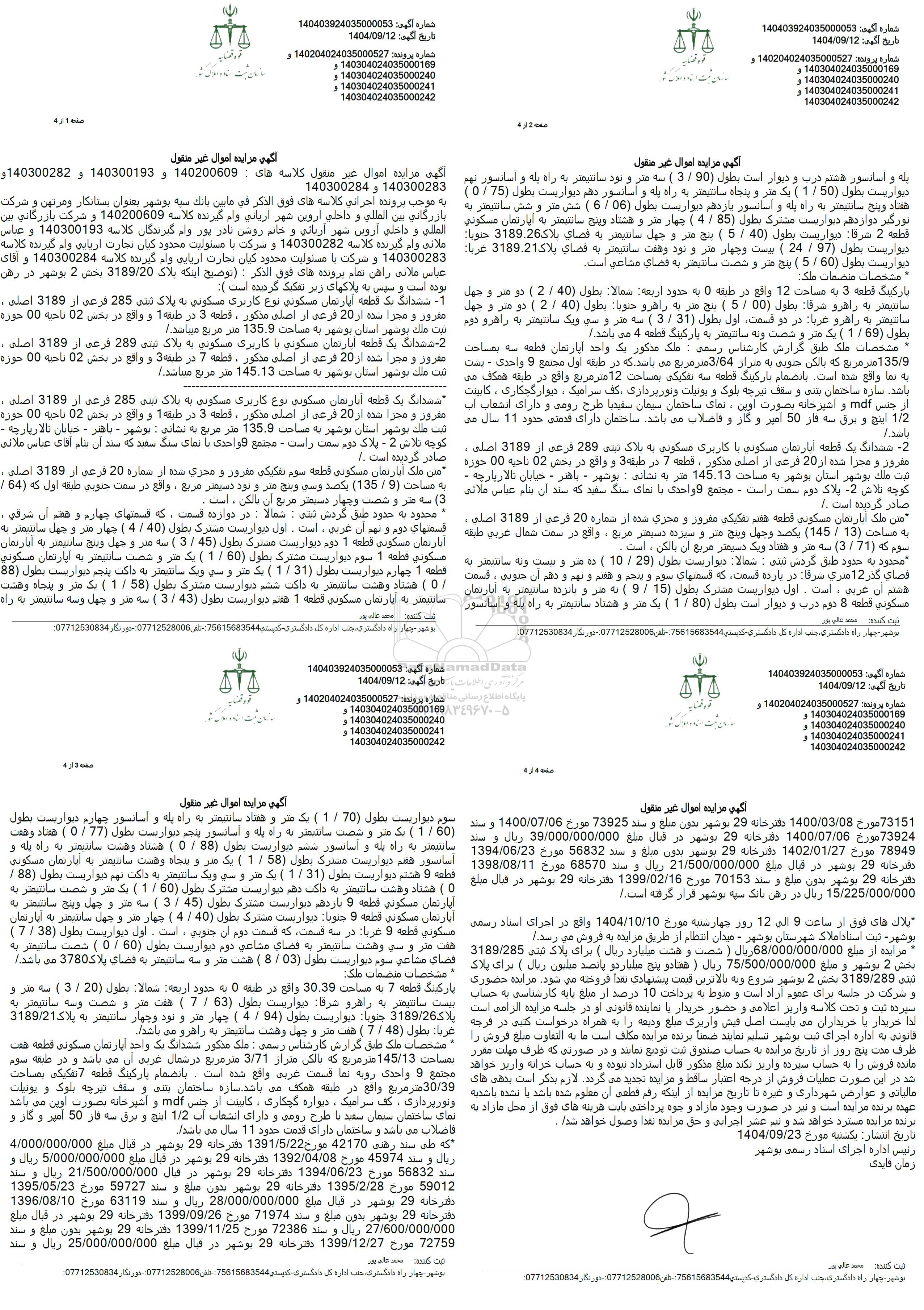 اگهی مزایده اموال غیر منقول کلاسه های 140200609 و 140300193 و 140300282 و 140300284 140300283107