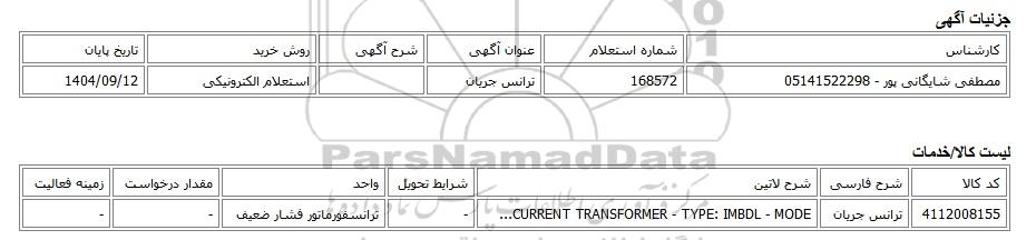 مصطفی شایگانی پور - 05141522298168572ترانس جریاناستعلام الکترونیکی1404/09/12