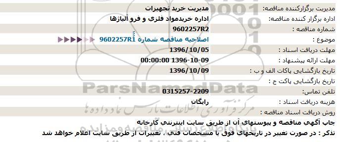 موضوع اصلاحیه مناقصه شماره 9602257r1