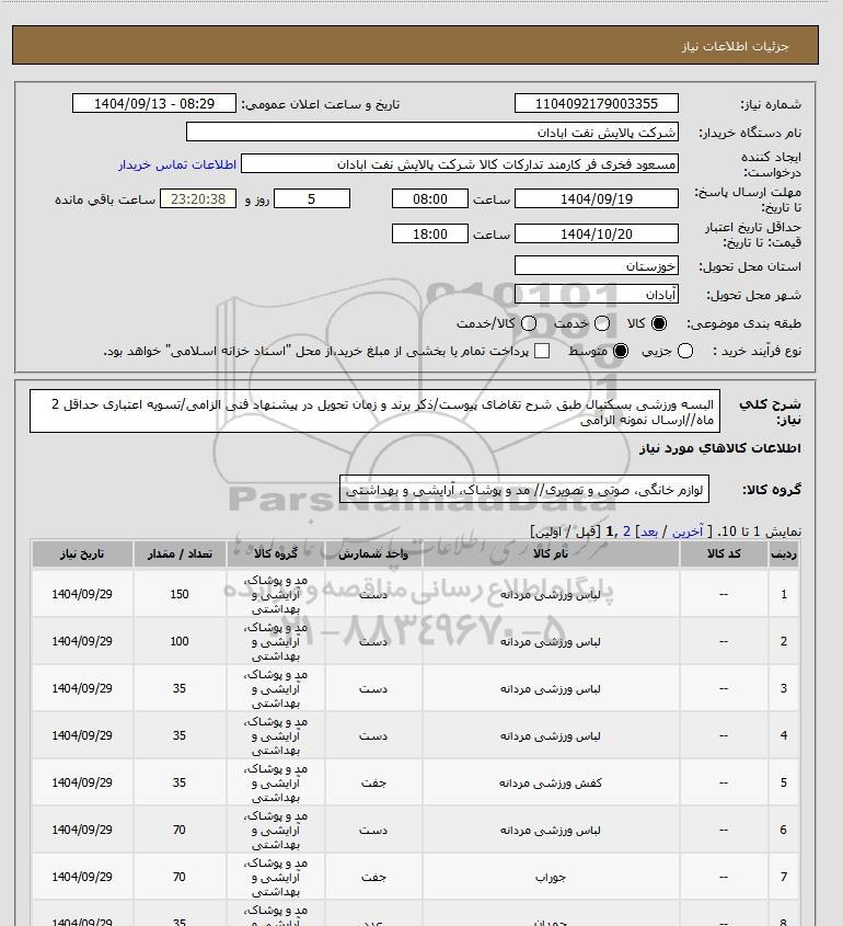| 9 | -- | لباس ورزشی مردانه | دست | مد و پوشاک، آرایشی و بهداشتی | 30 | 1404/09/29 |