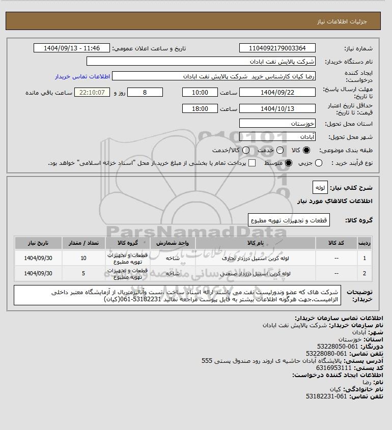 نام سازمان خریدار: شرکت پالایش نفت ابادان