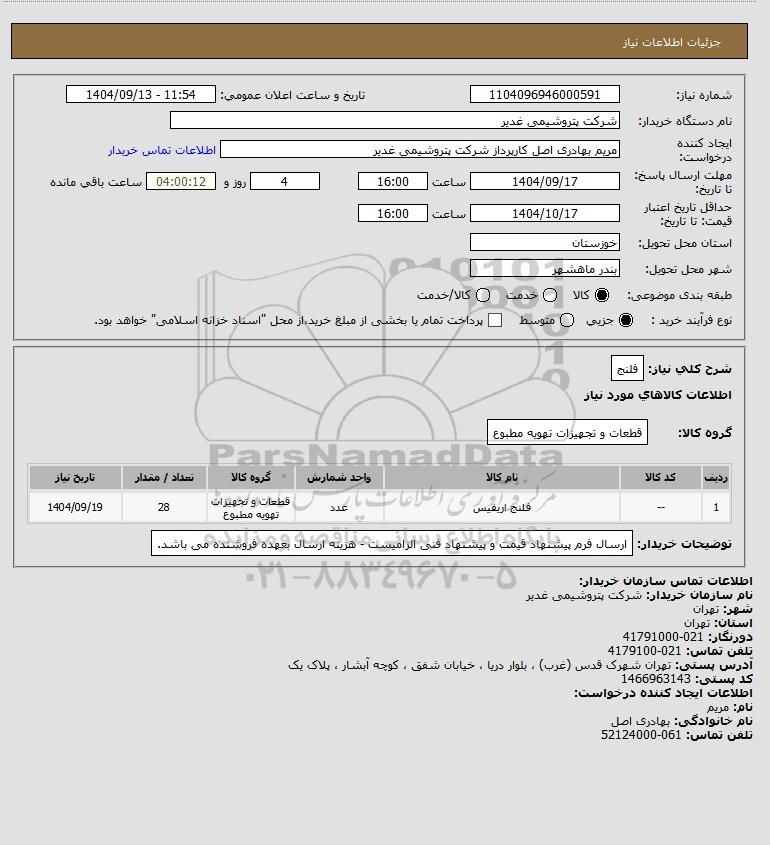 نام دستگاه خریدار:شرکت پتروشیمی غدیر