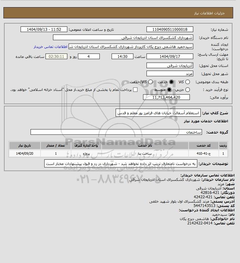 استعلام استعلام آسفالت خیابان های فرامرز پور معلم و قدس, استعلام استعلام آسفالت خیابان های فرامرز پور معلم و قدس
