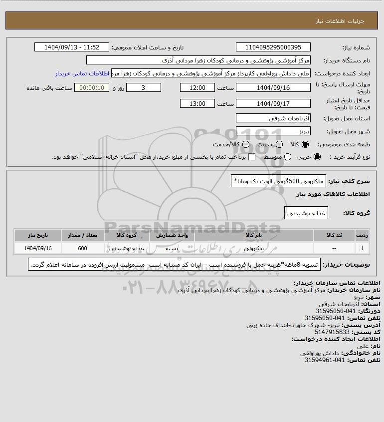 شرح کلی نیاز: ماکارونی 500گرمی الویت تک ومانا*