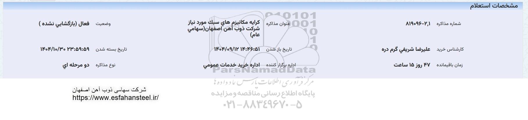 عنوان مذاکره کرایه مکانیزم های سبک مورد نیاز شرکت ذوب آهن اصفهان